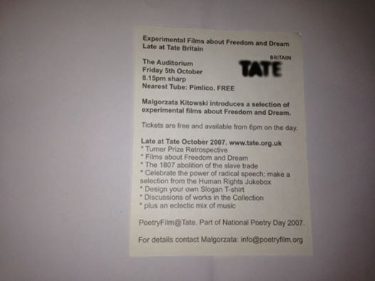 PoetryFilm at Tate: Freedom and Dream, October 5, 2007