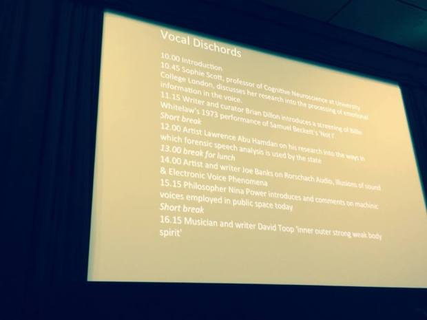 Agenda for the “Vocal Dischords” symposium at the RCA, March 2014