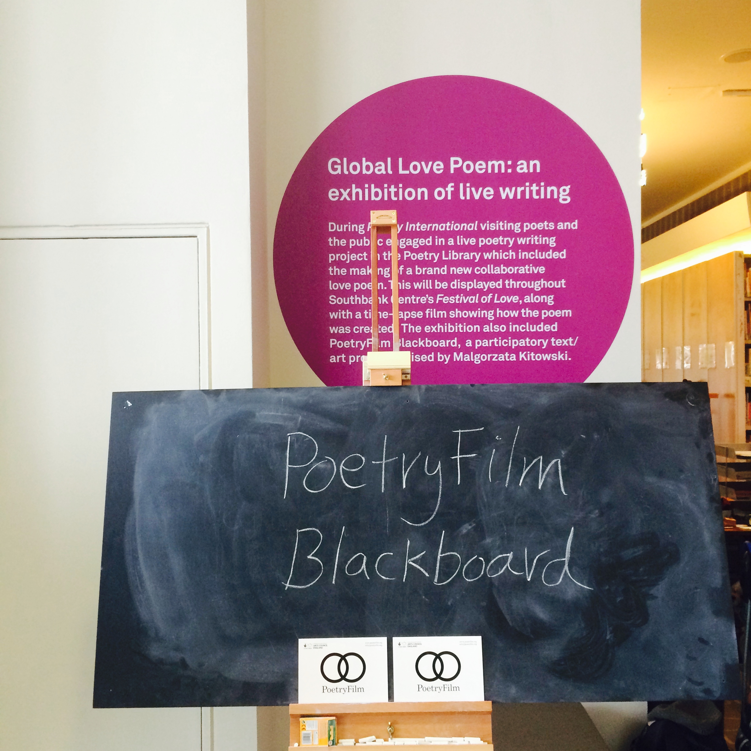 PoetryFilm Blackboard ran on Friday 18, Saturday 19 and Sunday 20 July 2014 at the Saison Poetry Library at the Southbank Centre.