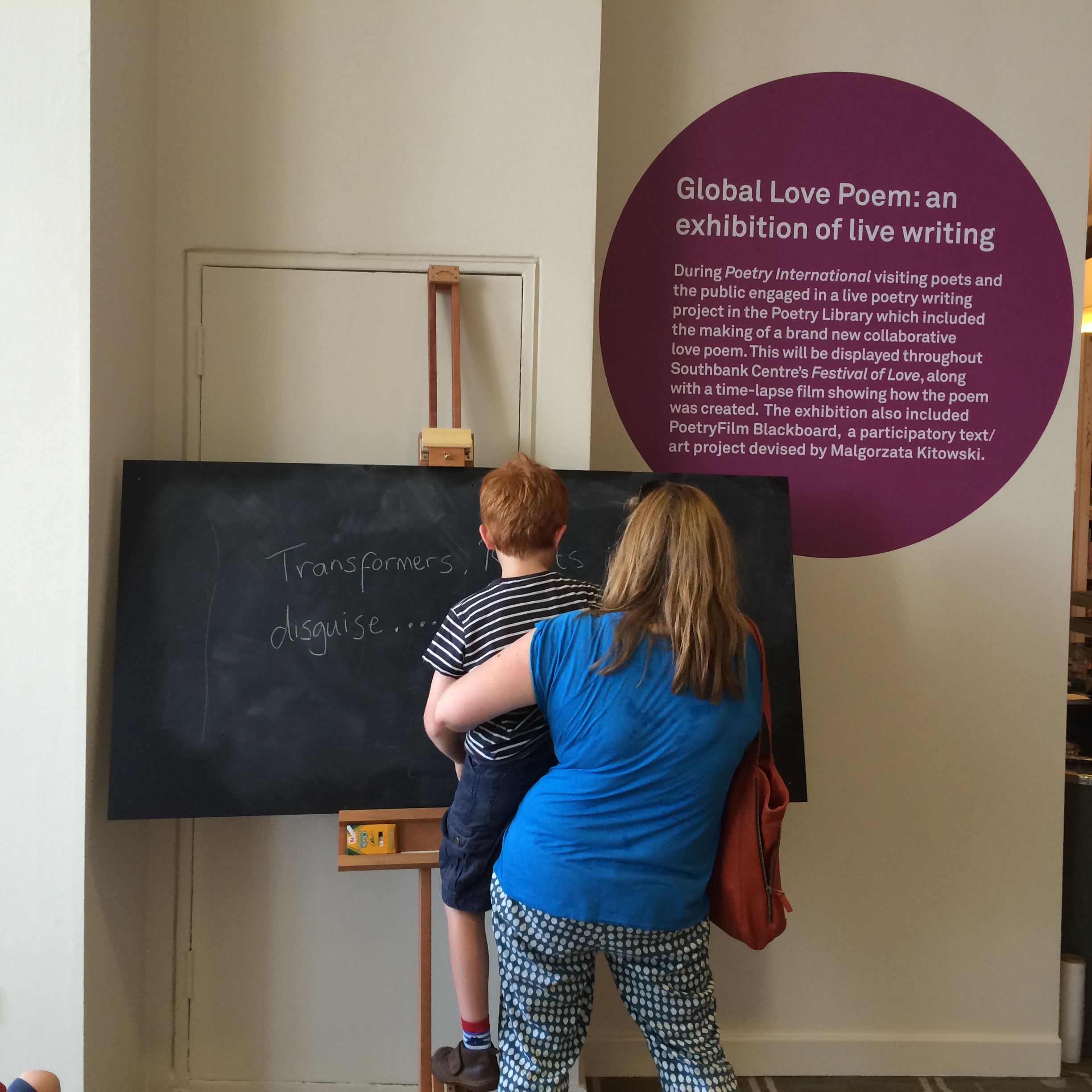Below is a selection of participant photographs taken during the PoetryFilm Blackboard project on Friday 18 July 2014 at the Southbank Centre.