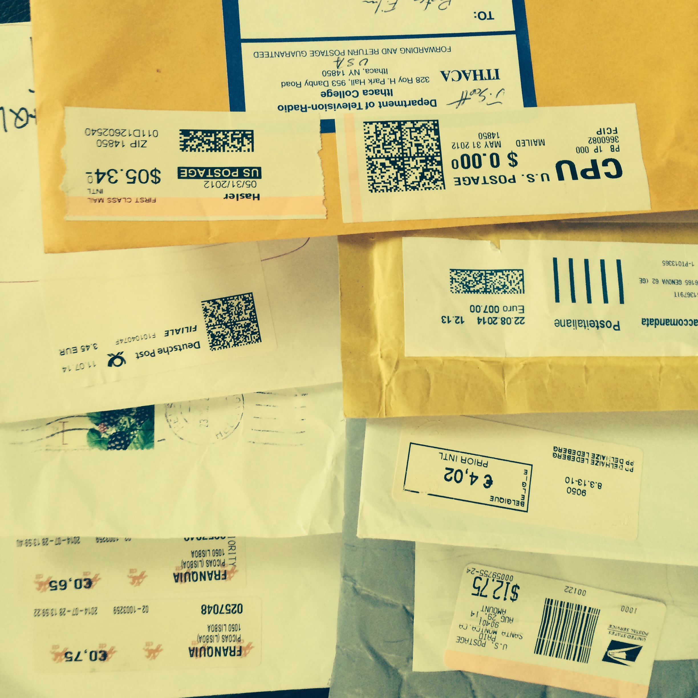 This is one of my favourite envelopes received. It is from Sweden and features four stamps of the important Swedish photographers Sune Jonsson (a documentary photographer and writer), Gunnar Smoliansky (a photographer of the understated), and Denise Grunstein (an ethereal portrait photographer) positioned jauntily.