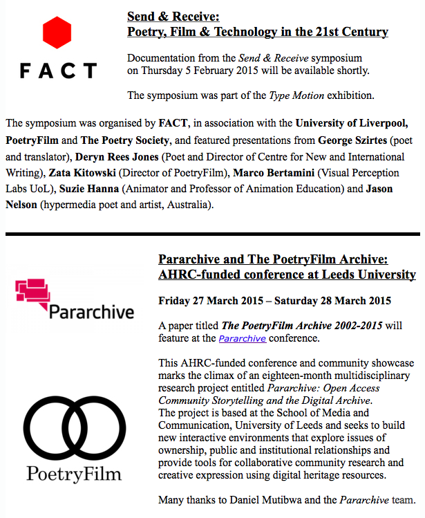 PoetryFilm at CCCB Barcelona, 19-20 March 2015
