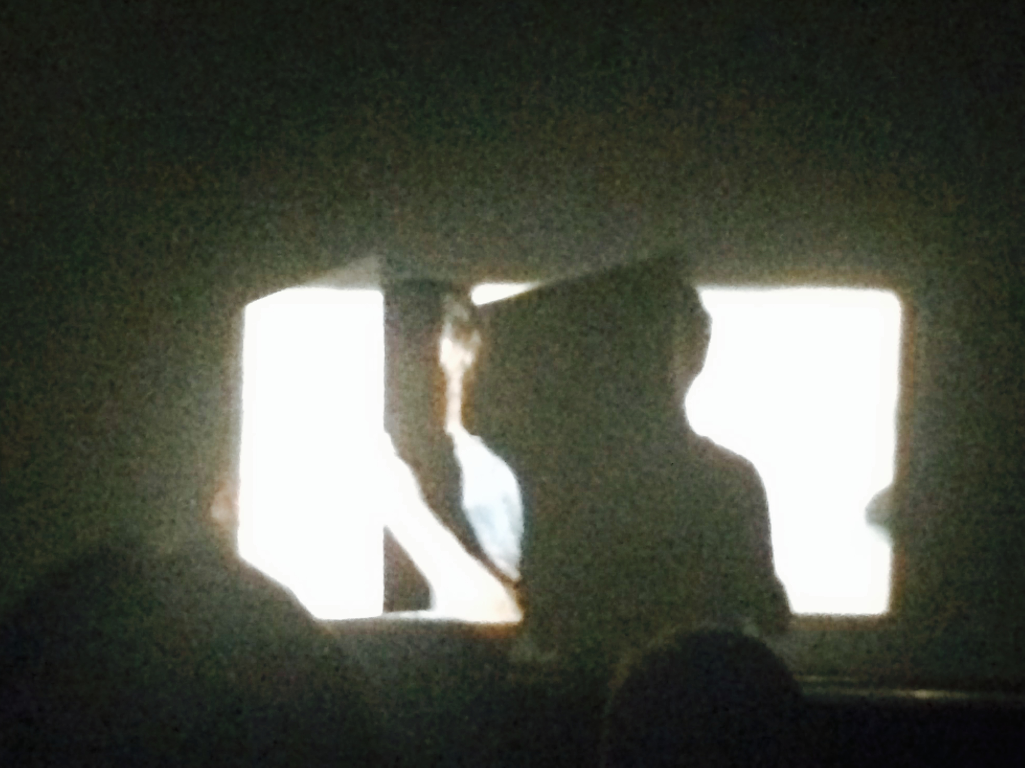 The PoetryFilm “Transmutations” programme was advertised on flatscreen TVs at Tower Mill. The image is a film still from “Kissing In Hats” by Stuart Pound and Rosemary Norman
