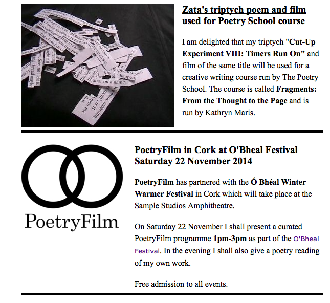 I am delighted to announce a series of forthcoming PoetryFilm projects – both in the UK and overseas.